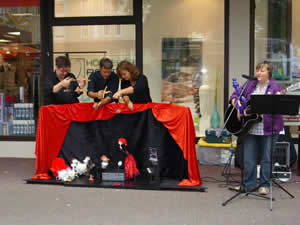 Im Rahmen des Arnsberger Kunstsommer hatten unsere Chickenburgers zusammen mit Sängerin Ute Balkenohl einen spannenden Auftritt auf dem Europaplatz: