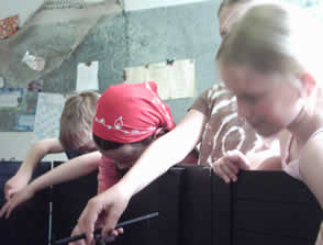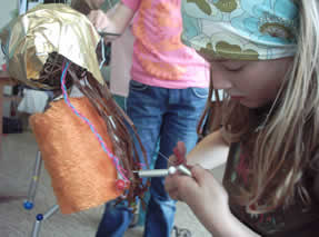 Am 2. und 3. Tag schreitet der Bau gut voran. Nach der Fertigstellung werden die Marionetten an Fäden aufgehangen. Dies ist der schwierigste Teil der Arbeit und erfordert viel Geduld und Konzentration: