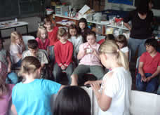 Der 4. Tag steht im Zeichen der Erarbeitung kleiner Szenen. Mit erstaunlicher Kreativität entwickeln die Kinder in kürzester Zeit kleine Stücke, die auf dem Stockumer Kunstsommer zu einer Aufführung zusammengefügt werden: