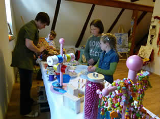 14 Künsrtler erfüllten am 28. und 29. Mai 2011 den„Schepes Hoaf“ in Dörnholthausen wieder mit Leben. Über drei Etagen präsentierten die Hobbykünstler aller Altersstufen aus Stockum und Umgebung an diesem Wochenende ihre Talente und boten ihre Kunstwerke zum Kauf. Ob Marioentten, Perlenkunst, Malerei, Fotografie oder Kartenkunst - die zahlreichen Besucher konnten in der vom Marionettentheater Firo organisierten Künstlerwerkstatt Vieles entdecken und bestaunen. Am Samstag gab es zudem mit der Gruppe "Die Da" aus dem Chor Con Voice auch einen akustischen Leckerbissen füe das Publikum. Der Erlös aus dem Verkauf der kulkinarischen Kunstwerke fliest in die Arbeit des Stockumer Jugendraumens!