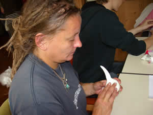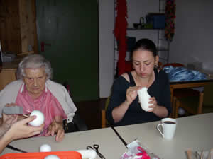 An zwei Tagen entstanden kleine Marionetten und Stabpuppen, die besonders für Rollstuhlfahrer geeignet sind, da hier keine Fäden bedient werden müssen und eine Grundplatte unter dem Sitz für Halt sorgt. |